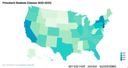 普林斯顿大学并没有接受各种各样专业人士的孩子。它不成比例地吸引了来自该国最富裕地区(主要是东部地区)的学生。