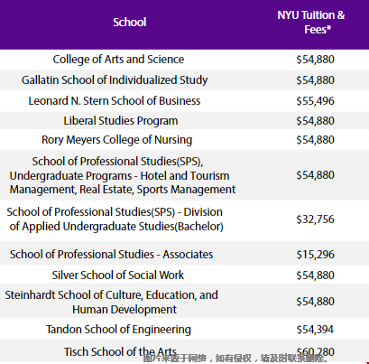 内附:纽约大学以往各个学院本科收费标准(这些只是以往估计,学费总额可能因学校而异,后期也会存在3-5%的年度涨幅,学生需根据实际情况做出调整)
