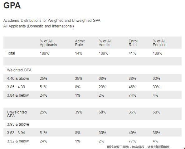 虽然官网明确,非居民高中GPA需要达到3.4,但是根据以往2020入学学生可见,学生加权平均GPA六成以上都达到4.40
