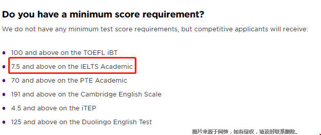 在准备参与雅思考试之前,学生需要提前去官网明确自己的雅思考试分数需要争取到的分数区间,其中纽约大学每个学院,都有属于自己的雅思最低分数,但是大致区间在6.5-7.5分,这是学生需要提前明确的,特殊学院会有雅思单项分数要求,以下是纽约大学不同学院雅思要求:
